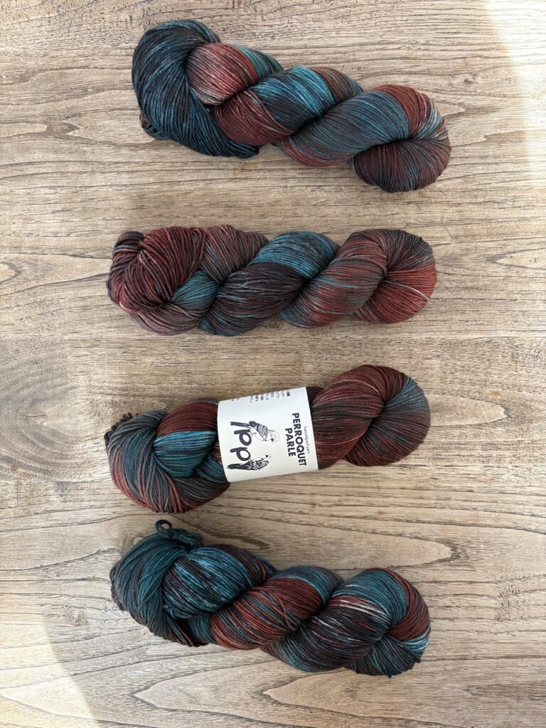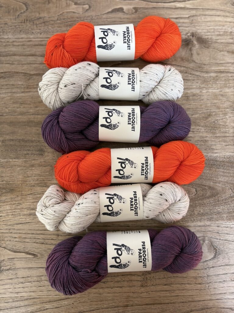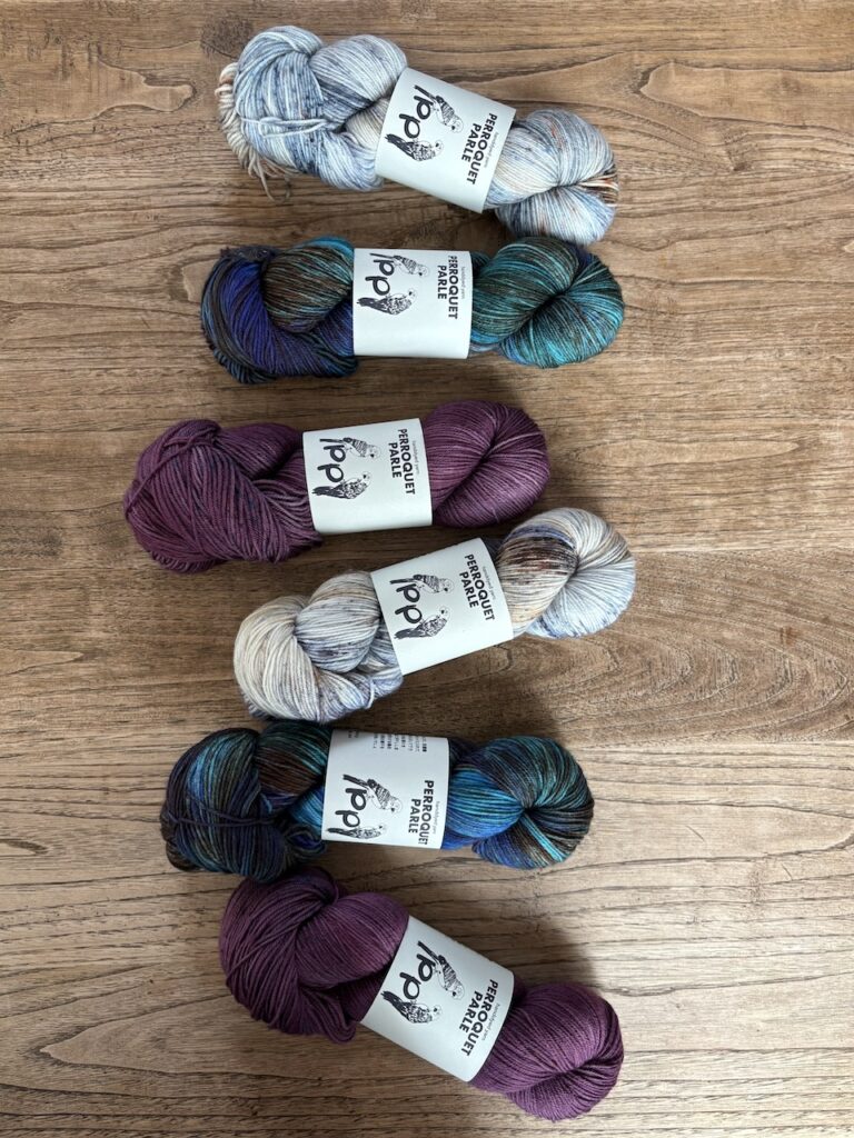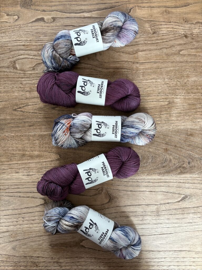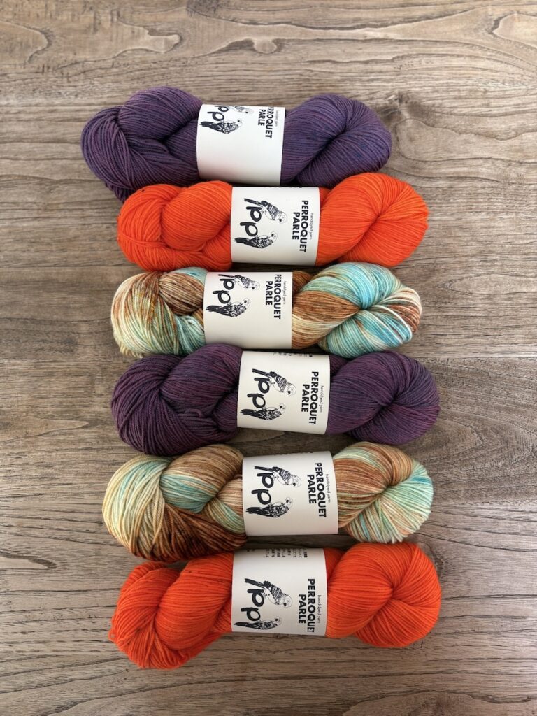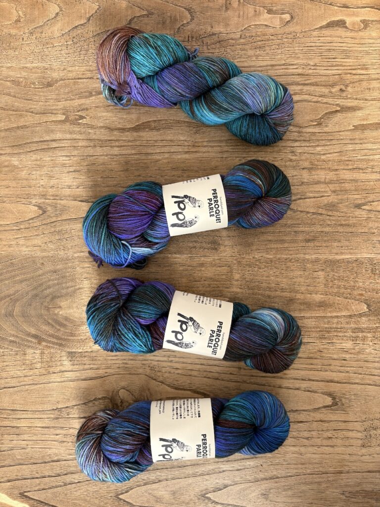 こちらはKaoさんのパターンのために作った糸セットです。ミニかせを好きなように合わせていくのがとても楽しいので、ぜひ編んでいただきたいです!