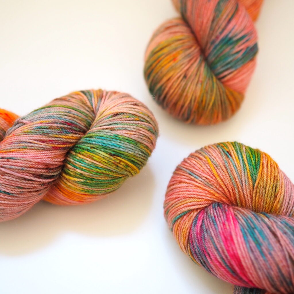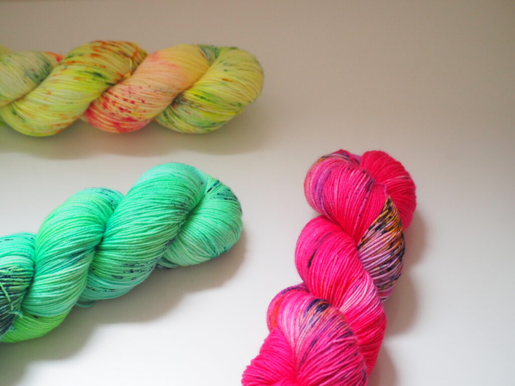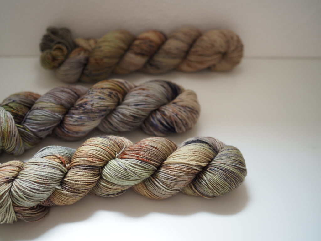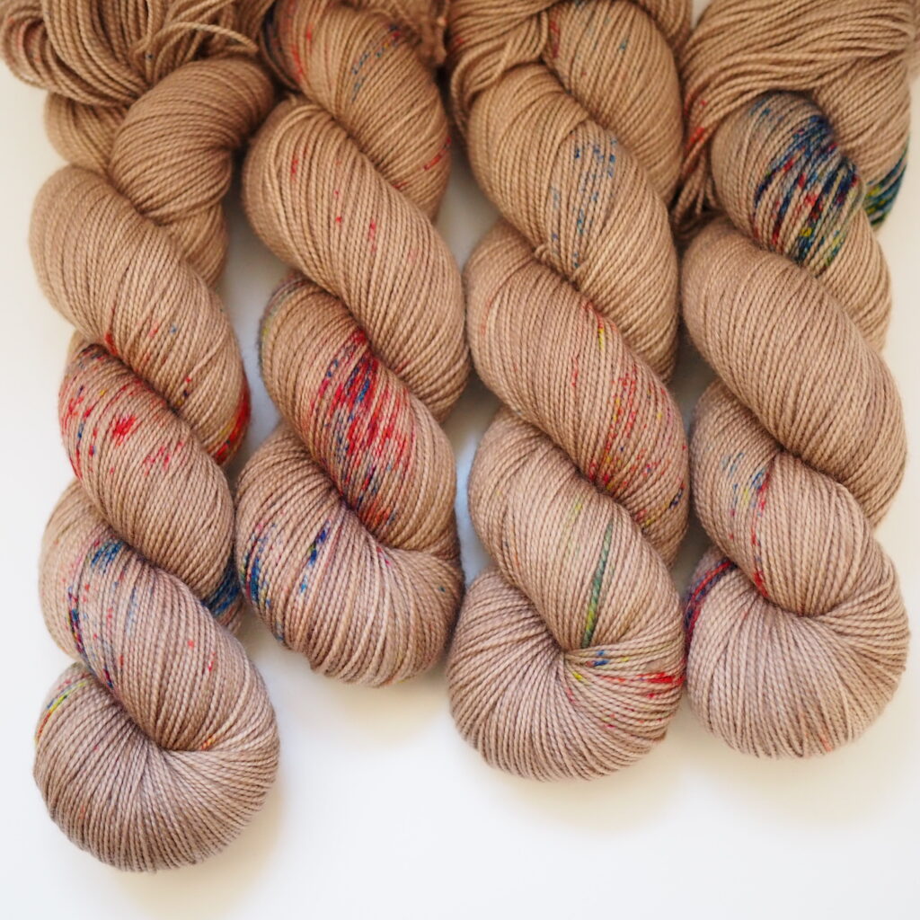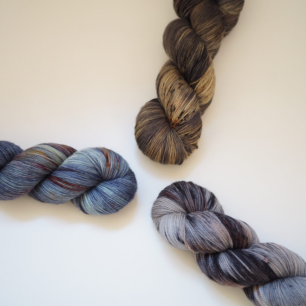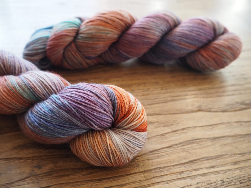 こちらはKaoさんのパターンのために作った糸セットです。ミニかせを好きなように合わせていくのがとても楽しいので、ぜひ編んでいただきたいです!