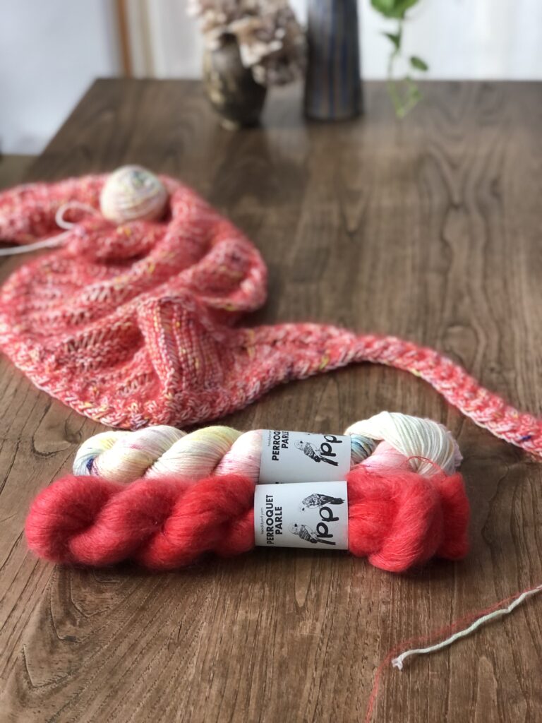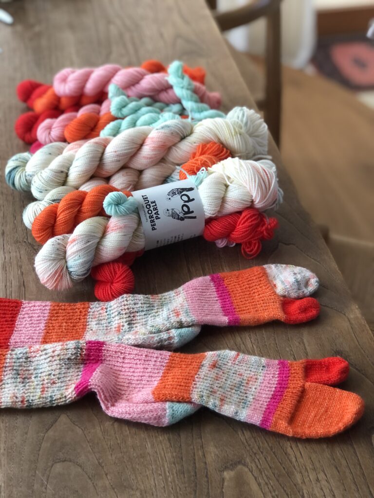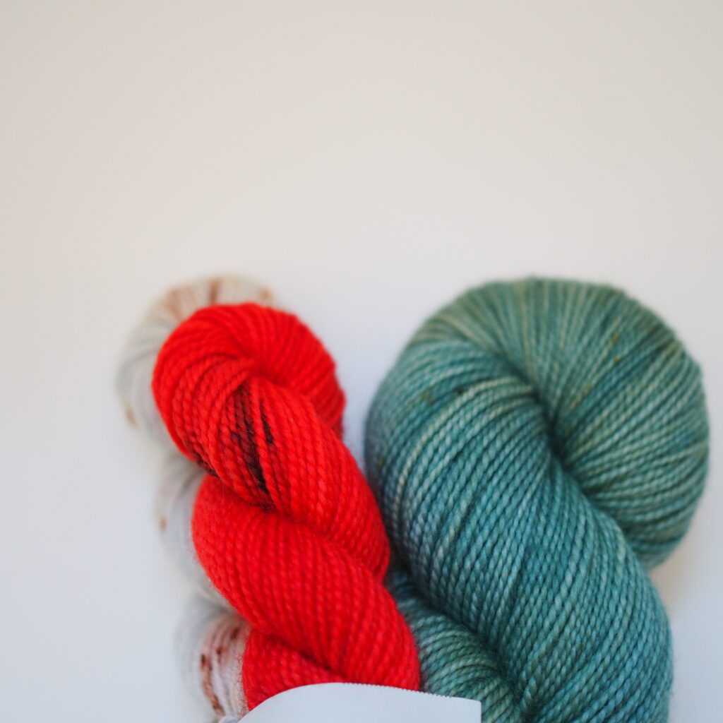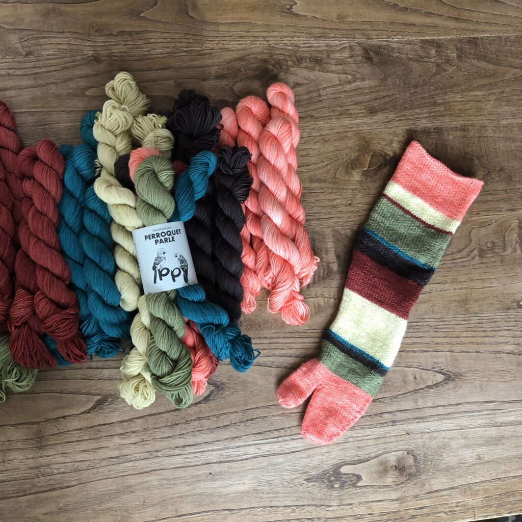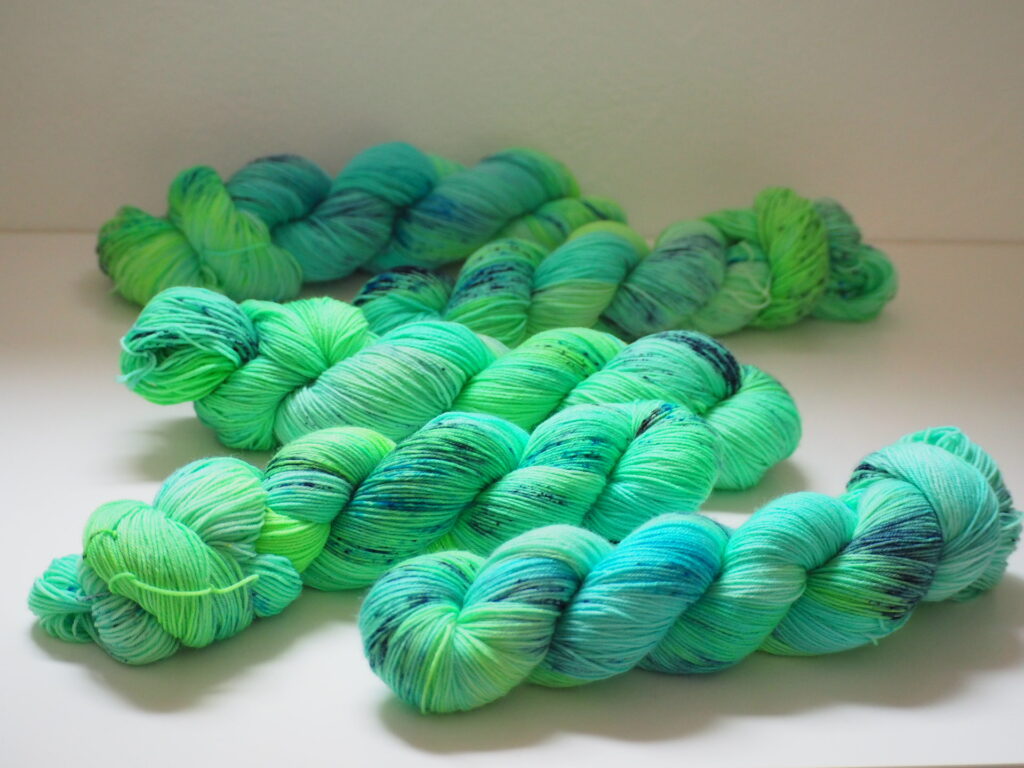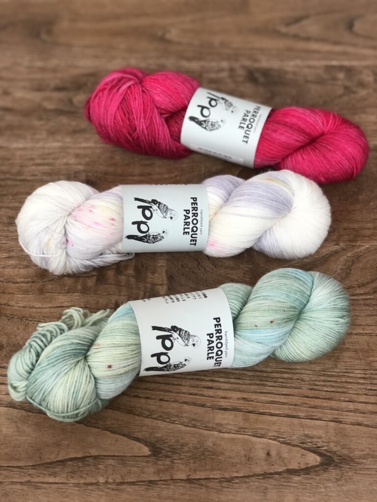 こちらはKaoさんのパターンのために作った糸セットです。ミニかせを好きなように合わせていくのがとても楽しいので、ぜひ編んでいただきたいです!