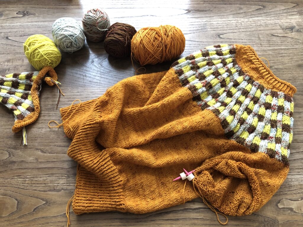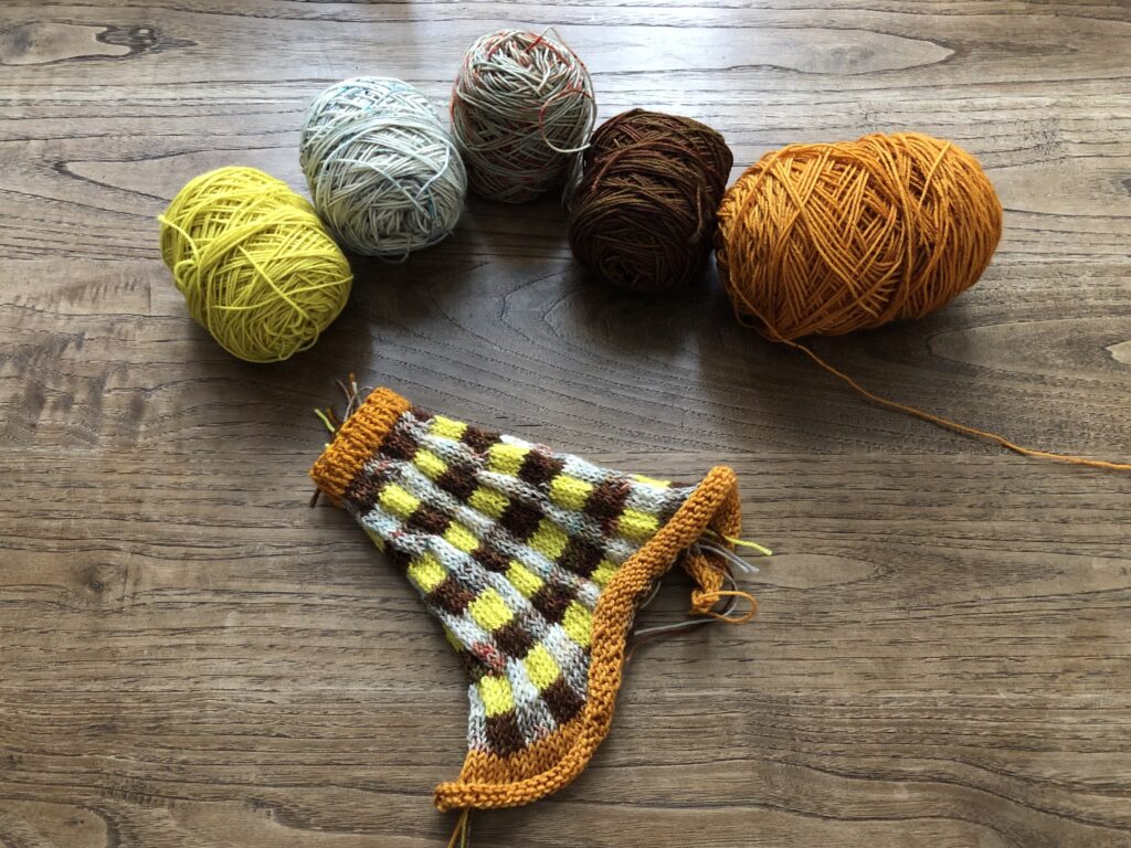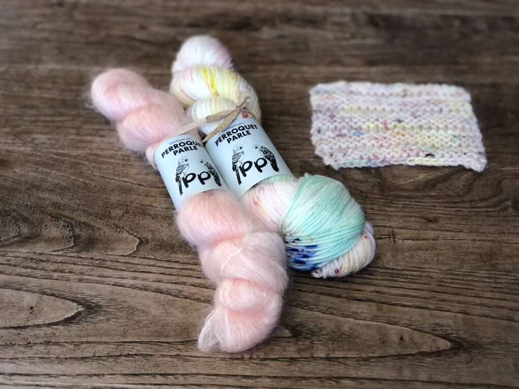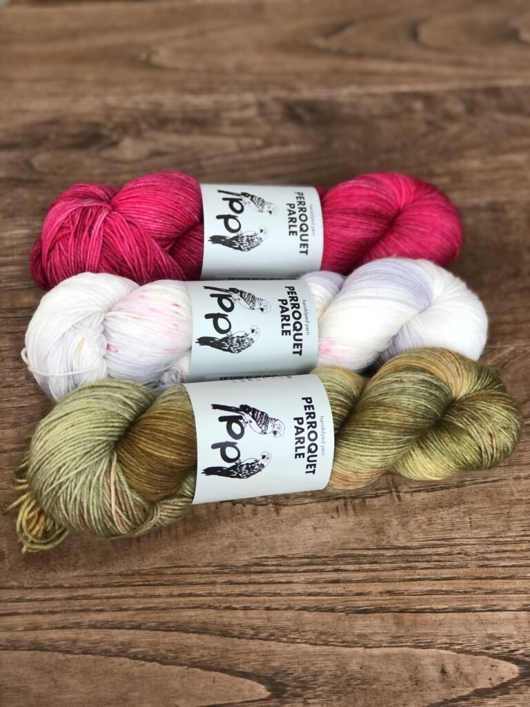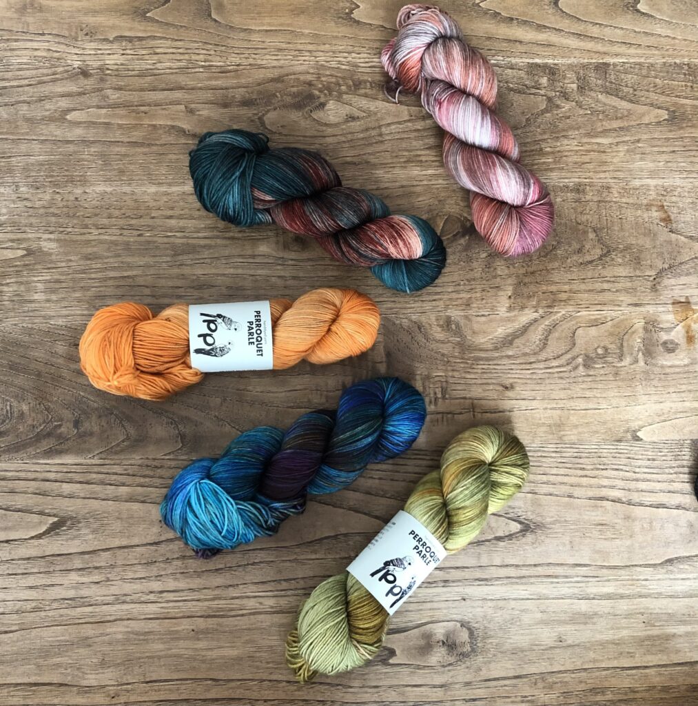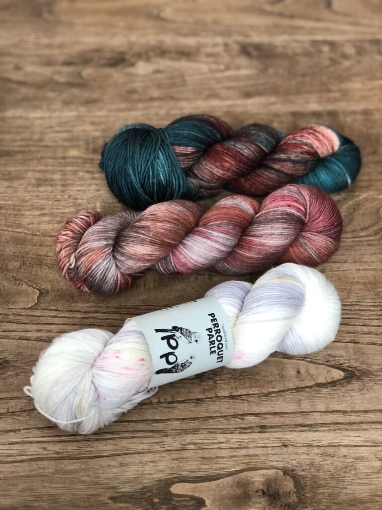 こちらはKaoさんのパターンのために作った糸セットです。ミニかせを好きなように合わせていくのがとても楽しいので、ぜひ編んでいただきたいです!