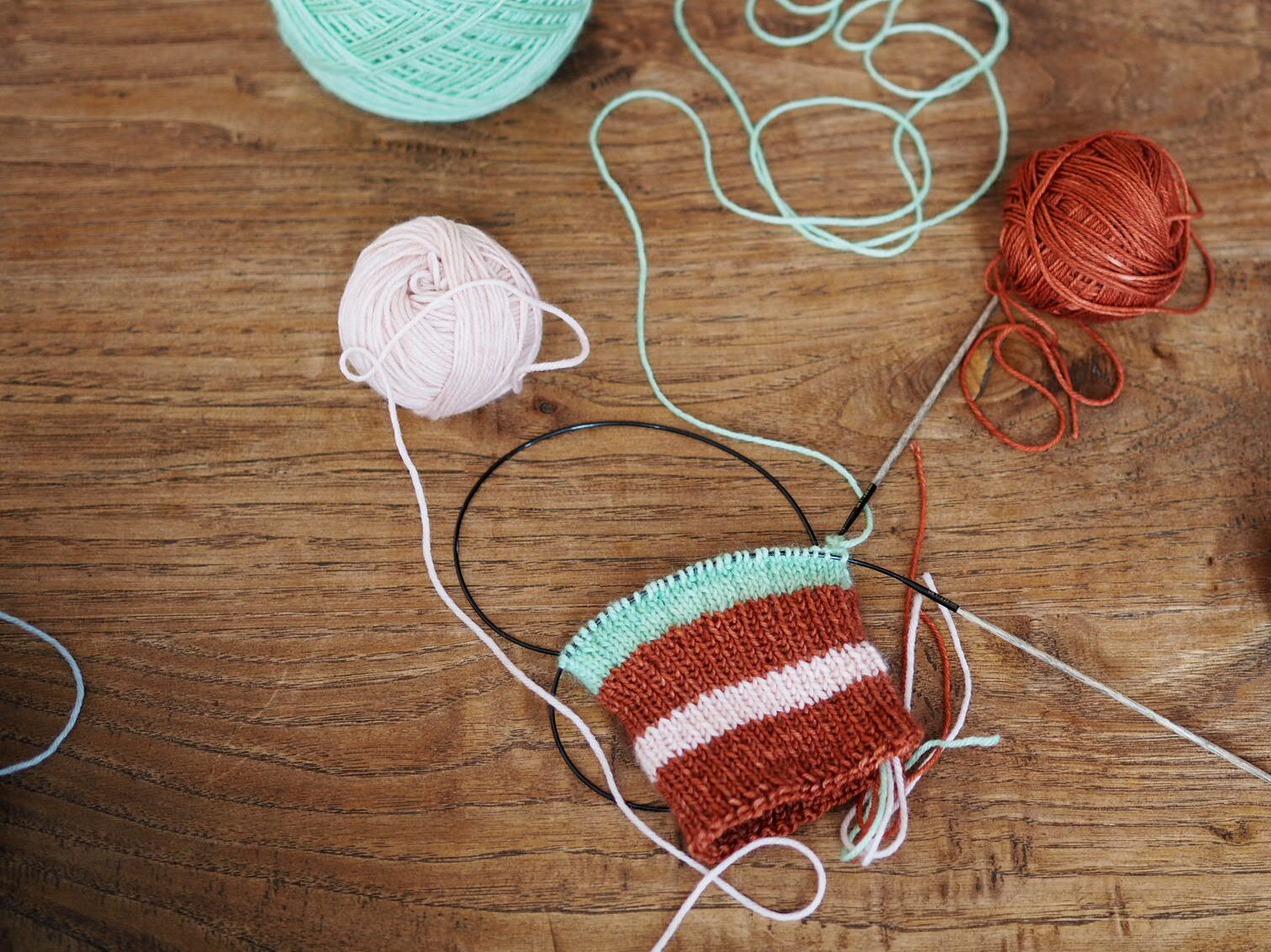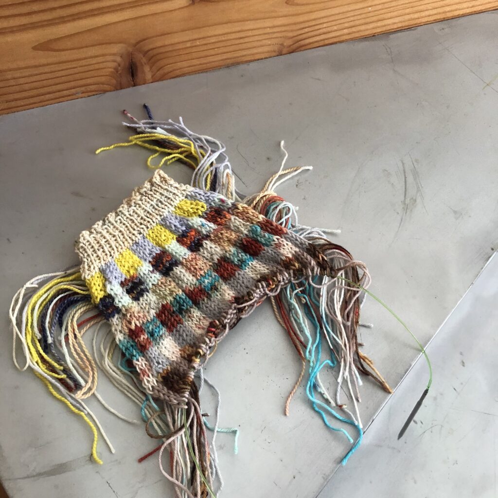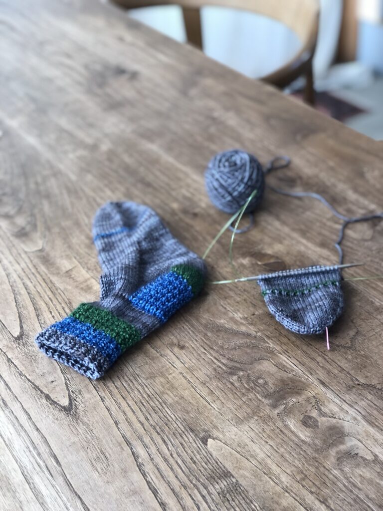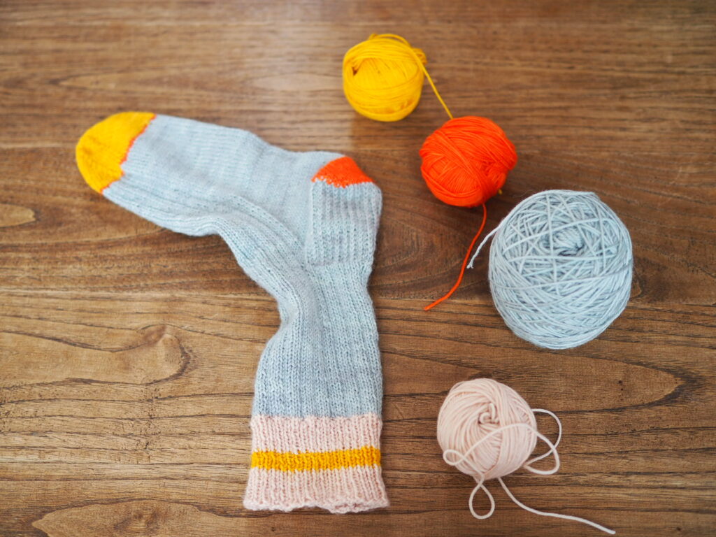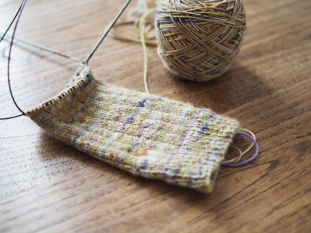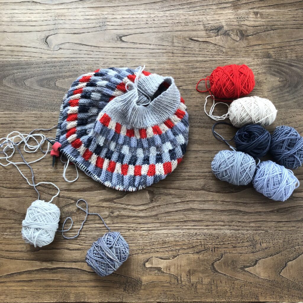 Sportなので指定の糸より少し細め。糸長はあるので、最後足りるかな?という心配はせずに編めました。針を少し細くして小さめにキュッと編んでみても良いかも?