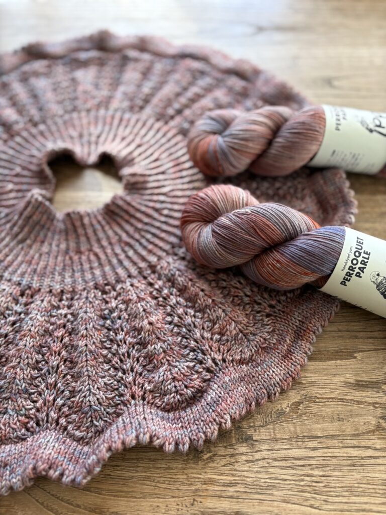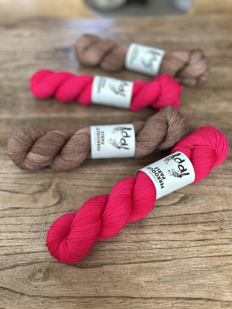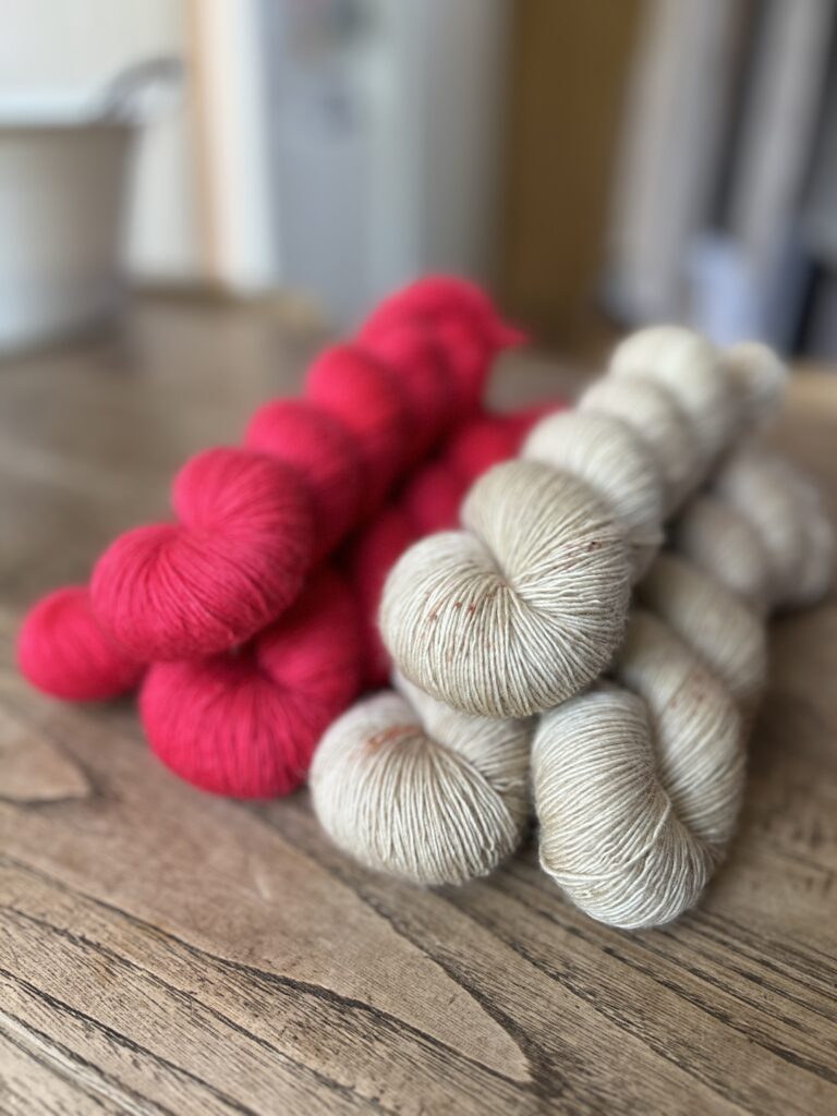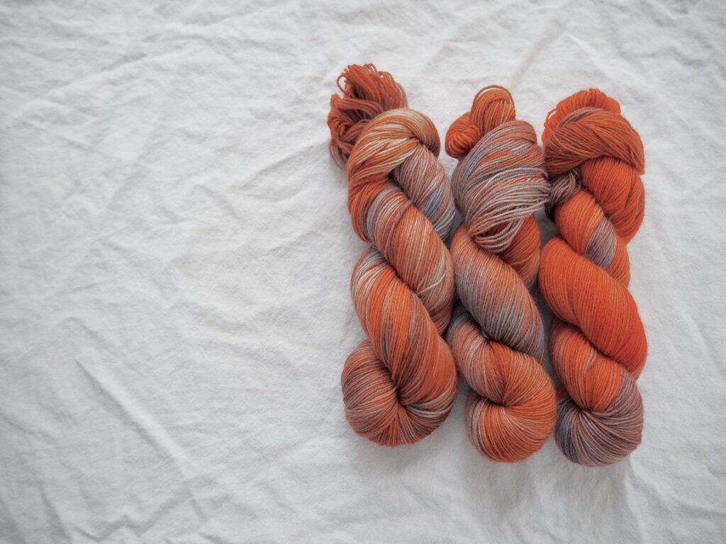 Brick Red はウエアを編んでも良さそうで、私は今このカラーでAriaを編み始めています。(サンプルの糸はSINGLESです)