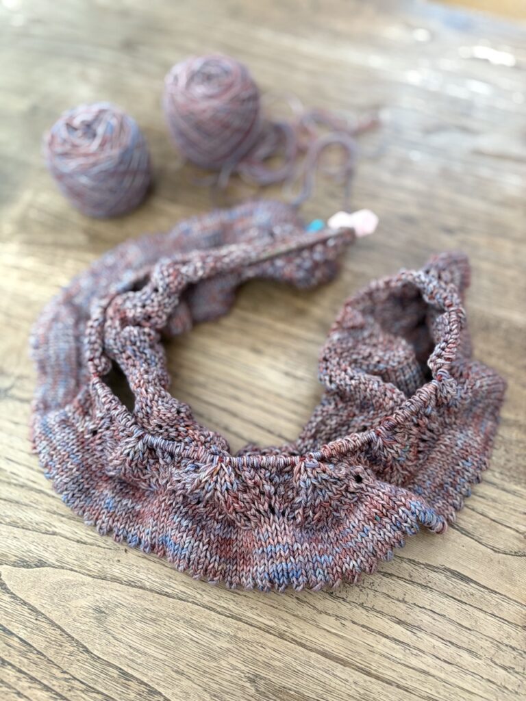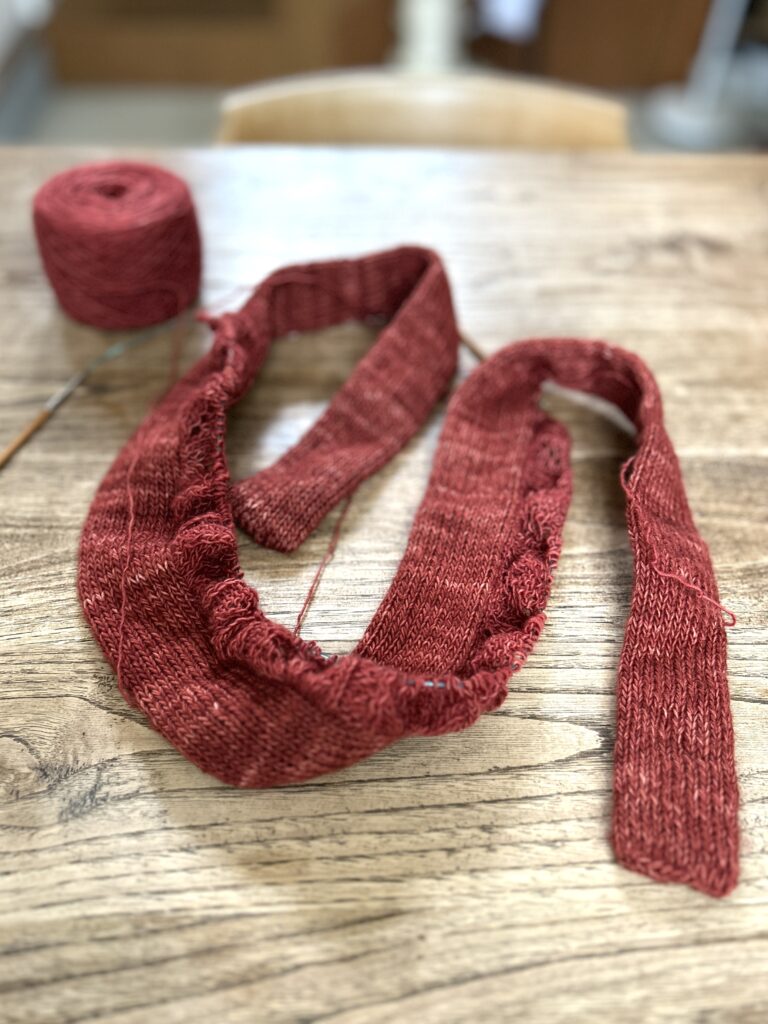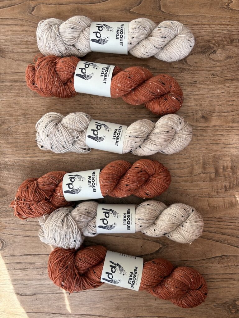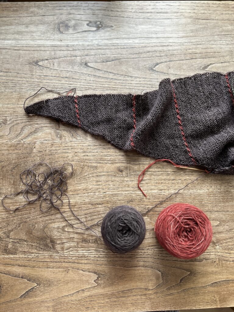 Brick Red はウエアを編んでも良さそうで、私は今このカラーでAriaを編み始めています。(サンプルの糸はSINGLESです)