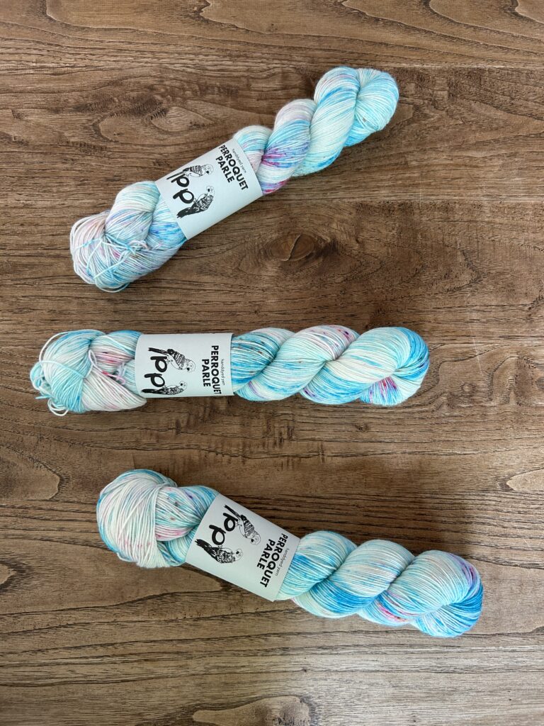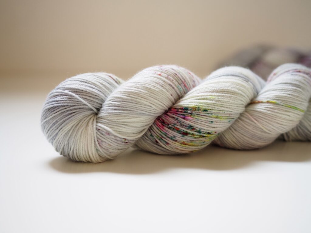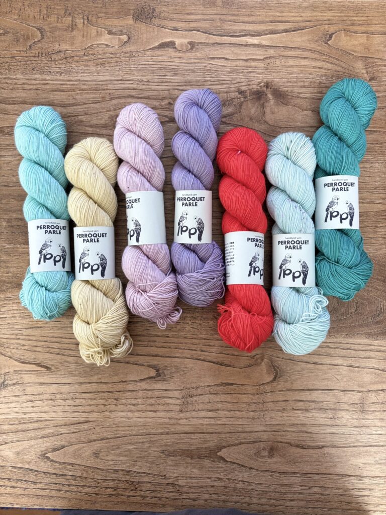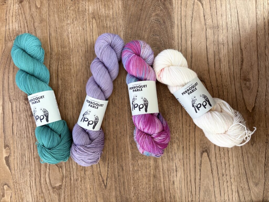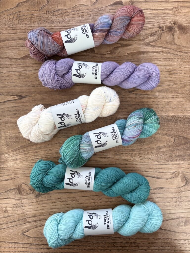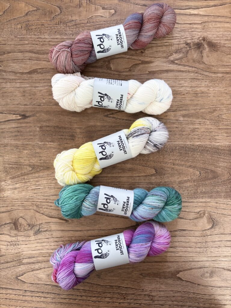 シングルプライにしては毛玉になりにくく、編み地には軽さがあります。靴下向きではなく、ウエアやショールなどにおすすめです。