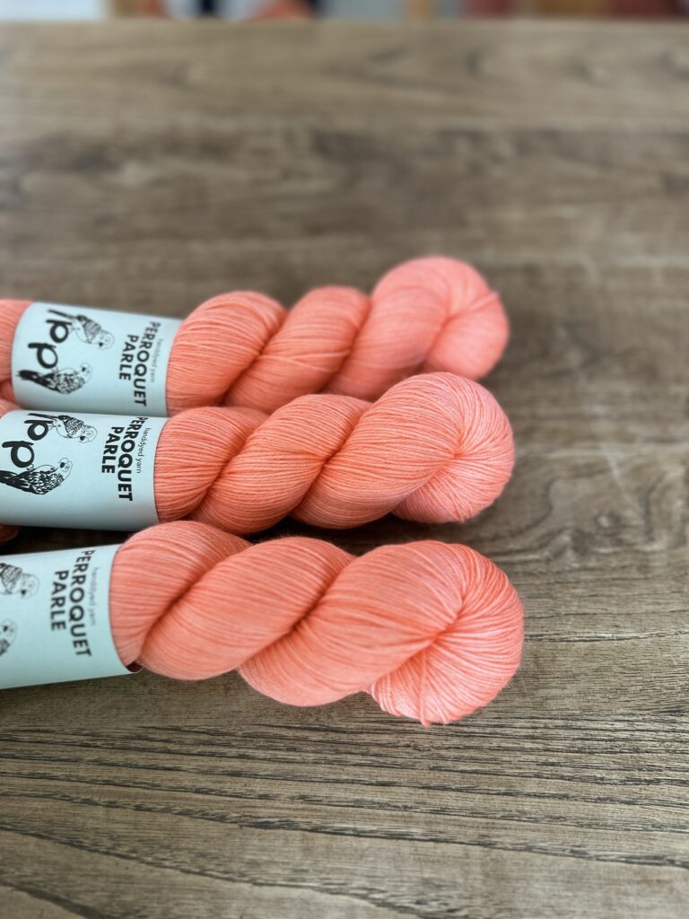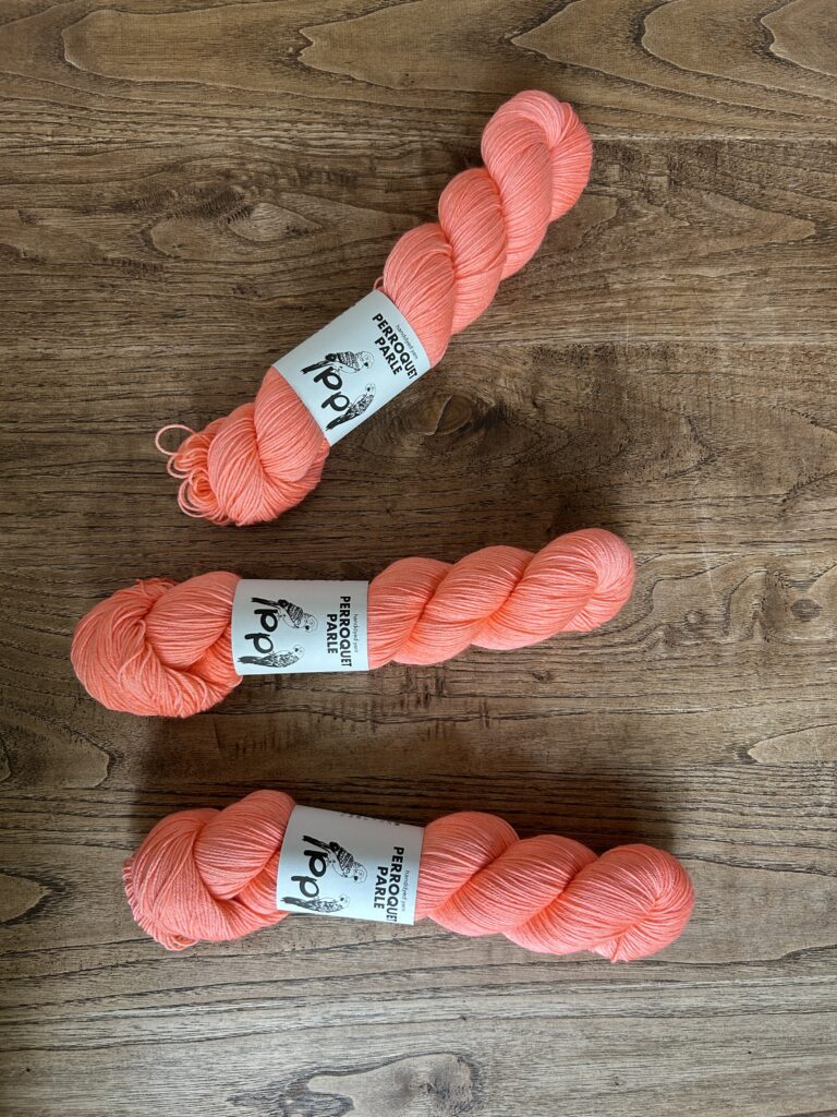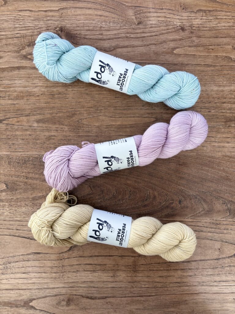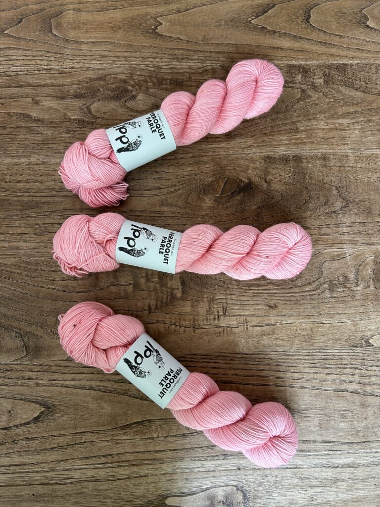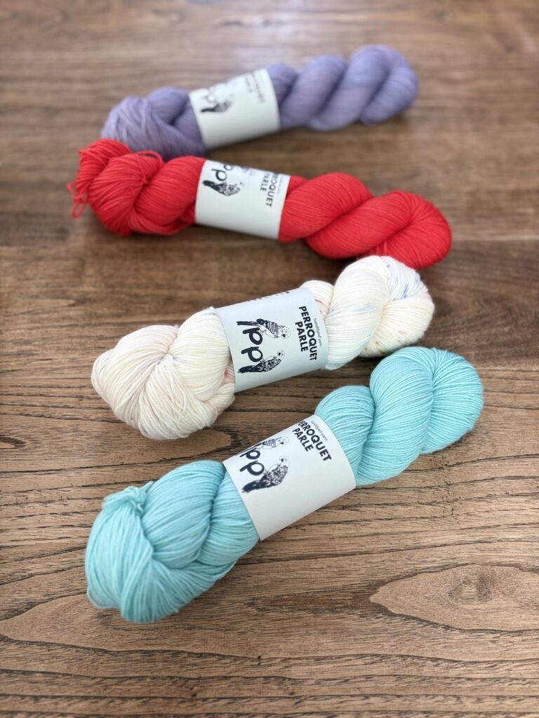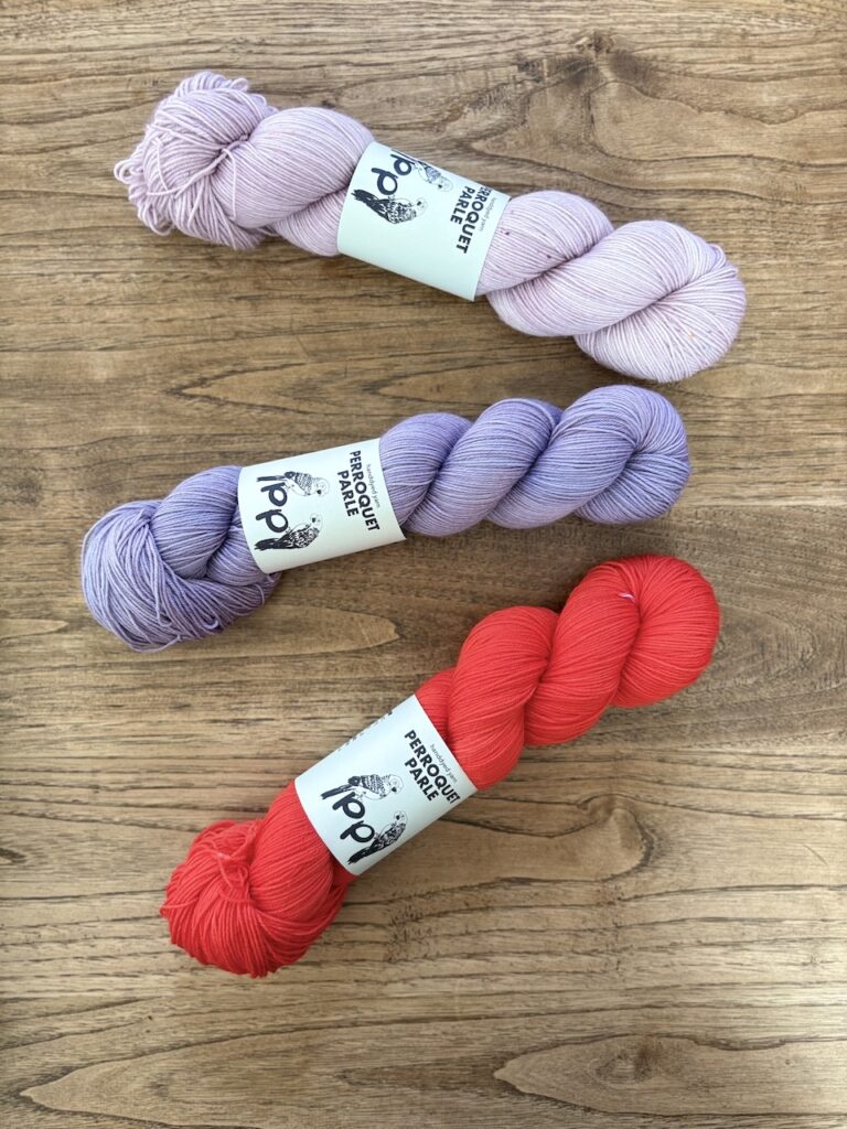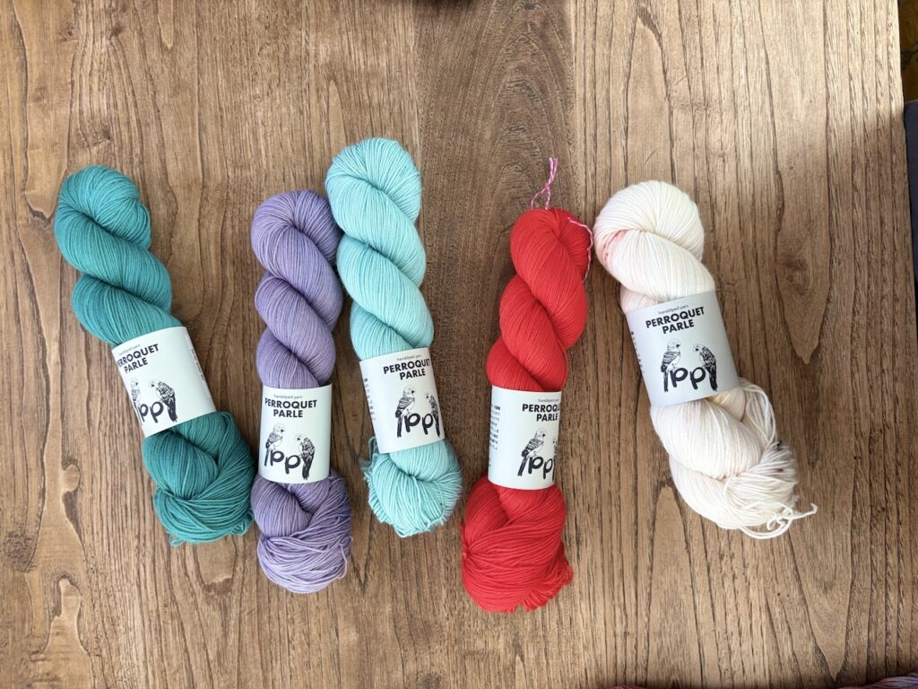 シングルプライにしては毛玉になりにくく、編み地には軽さがあります。靴下向きではなく、ウエアやショールなどにおすすめです。