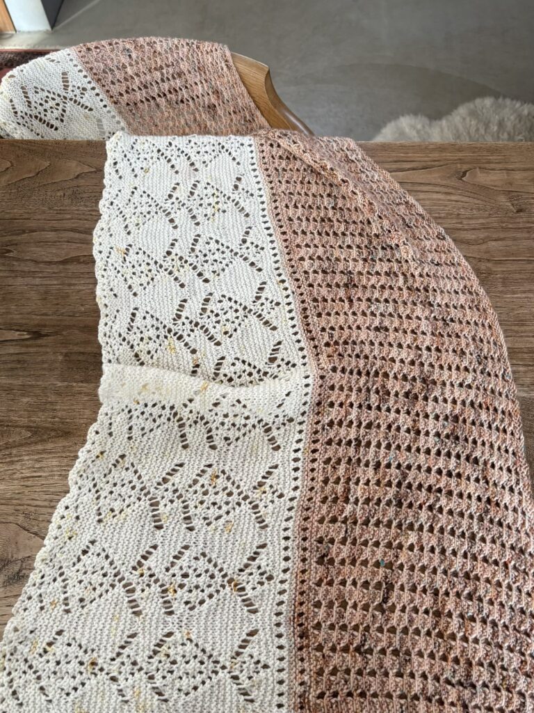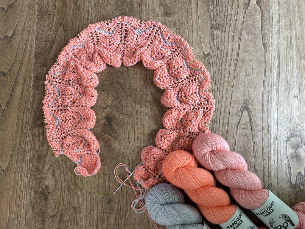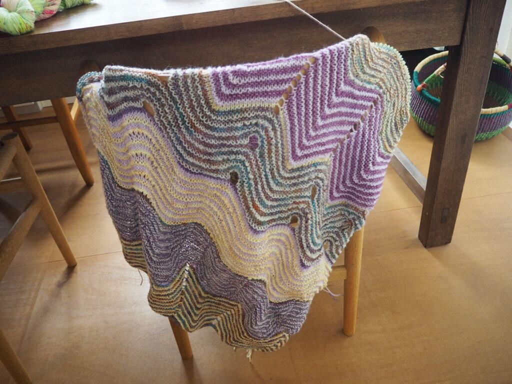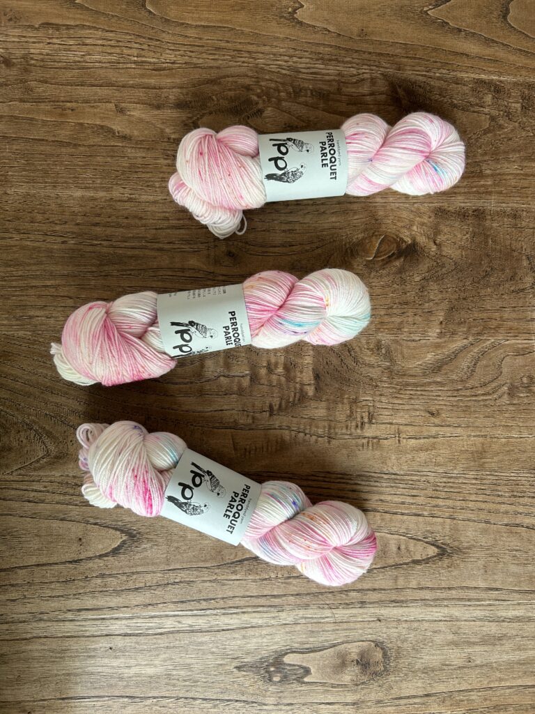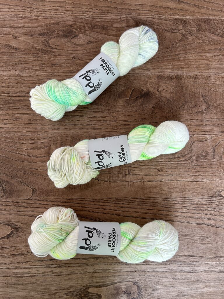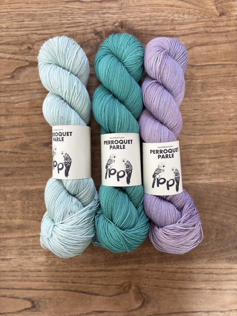シングルプライにしては毛玉になりにくく、編み地には軽さがあります。靴下向きではなく、ウエアやショールなどにおすすめです。